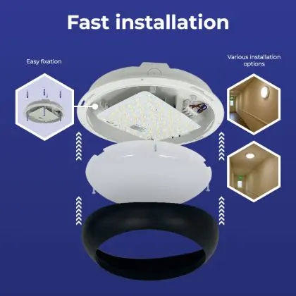 Prima di sostituire un vecchio apparecchio di illuminazione con uno nuovo è sempre consigliabile controllare le dimensioni. Installare questa plafoniera LED è molto facile: basta leggere attentamente le istruzioni e utilizzare il materiale di installazione fornito (viti, tasselli, ecc.). Se hai dubbi sull’installazione consulta un installatore certificato. Per questa lampada offriamo una garanzia di 6 anni.