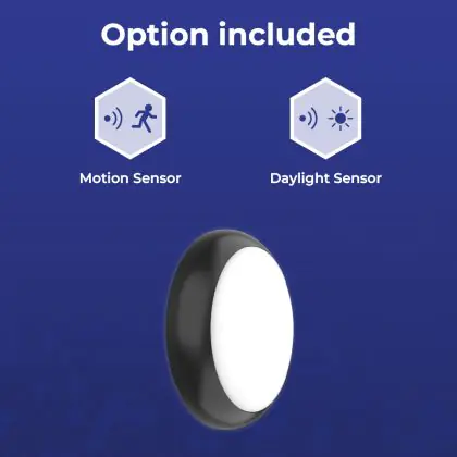 Noxion Bulkhead LED Pro V2 12/16/20W 2400lm - 830-840-865 CCT | 325mm - IP65 - Sensore di Movimento e Luce + Il Anello Nero