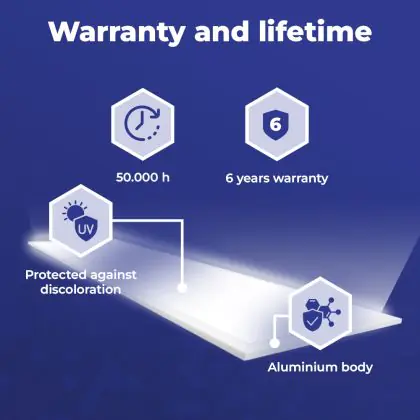 Questo pannello LED appartiene alla terza generazione della linea Delta Pro, progettata da Noxion per un’illuminazione efficiente e durevole. Grazie alla tecnologia LED integrata, emette un flusso luminoso affidabile e senza sfarfallii. La tecnologia offre anche un notevole risparmio energetico, in quanto questo pannello LED, che consuma solo 36W, è progettato per sostituire i vecchi pannelli con due tubi al neon da 30W l’uno. Oltre che sui costi dell'energia risparmierai anche su quelli di manutenzione e sostituzione, poiché questo pannello LED di Noxion ha una durata di 50.000 ore. Infini, i pannelli LED Delta Pro sono protetti da una garanzia totale di 5 anni!
