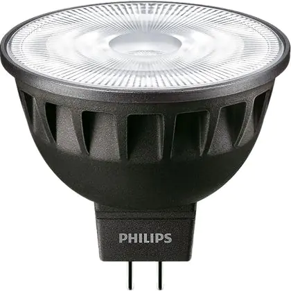 La Philips Master LED Faretti GU5.3 MR16 6.7W 440lm 60D - 940 Bianco Freddo | Miglior resa cromatica - Dimmerabile - Sostitutiva 35W è perfetta per la sostituzione della classica lamapda alogena35W GU5.3 con colore della luce 940 Bianco Freddo. Questa lampadina ha una forma Spot con un diametro di 50mm. La distanza tra I due pins è di 5.3mm. Queste lampade hanno bisogno di un trasformatore poiché operano a 12V. I trasformatori possono essere trovati in "Accessori" su questa pagina. Qual’è il trasformatore adatto? Dipende dal numero di lampade che si vuole installare. Il nostro servizio di vendita e assistenzati ti aiutera nella scelta. Passare a LED offre molti vantaggi!